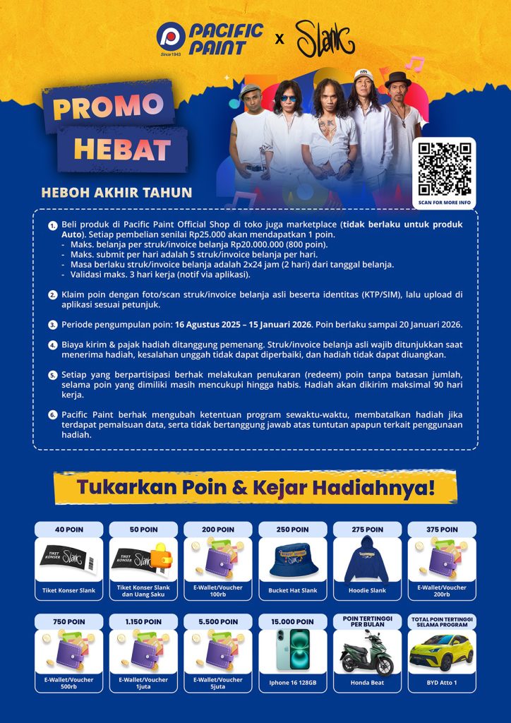 Official Online Store Produk Pacific Paint tersedia dan dapat dibelidi berbagai marketplace di bawah ini Belanja Sekarang Belanja Sekarang Belanja Sekarang Belanja Sekarang Belanja Sekarang PROMO HEBAT PACIFIC PAINT X SLANK